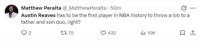 美记MAtthew Peralta:里夫斯应该是NBA历史上首位为一对父子都送出过空接助攻的球员吧?对吧?