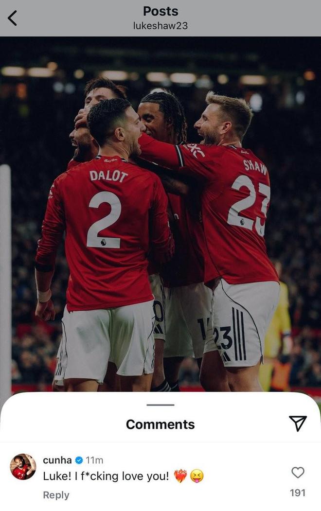 卢克-肖社媒庆祝胜利,库尼亚留言:我真xxx爱你!